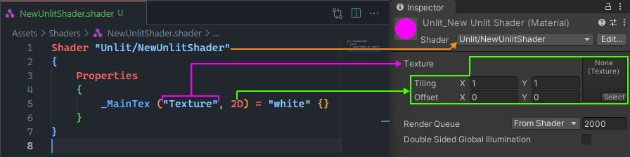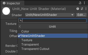 위 예제대로라면 Unlit → NewUnlitShader로 찾을 수 있습니다.